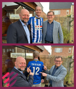 Als verrassing besloten Gunther Peeters en Marcel van den Bunder om Tom op zijn verjaardag thuis een officieel wedstrijdshirt van Macron cadeau te doen.
